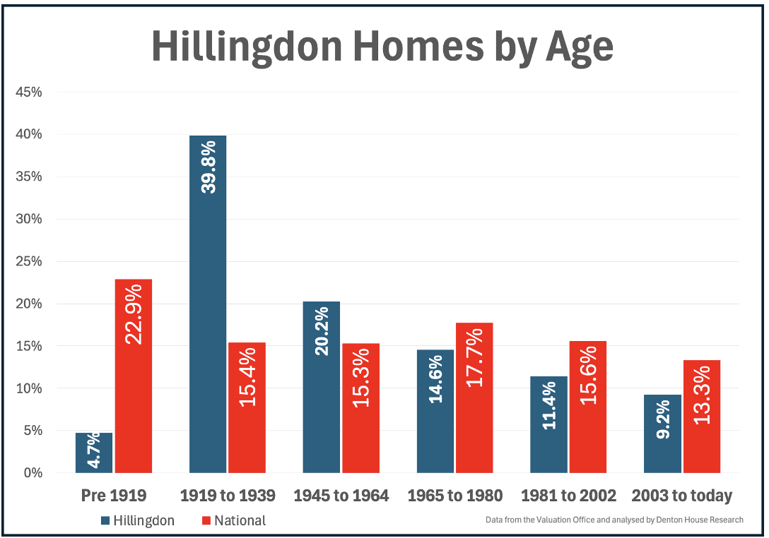 Hillingdon, and Ruislip especially, is not defined by just one building era. It is defined by many. When you compare each age band with the national average, you see how unique the local housing really is.