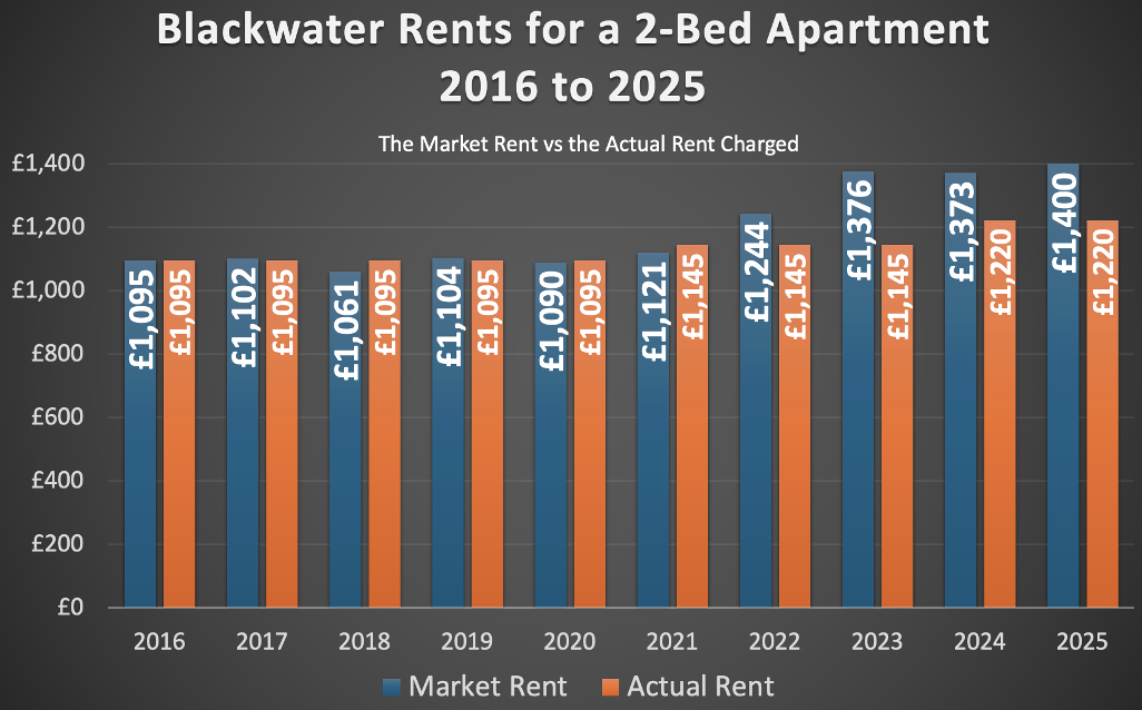 Rents in Blackwater since 2016 had risen by 27.8%, yet the landlord had only increased them by 11.4% ...